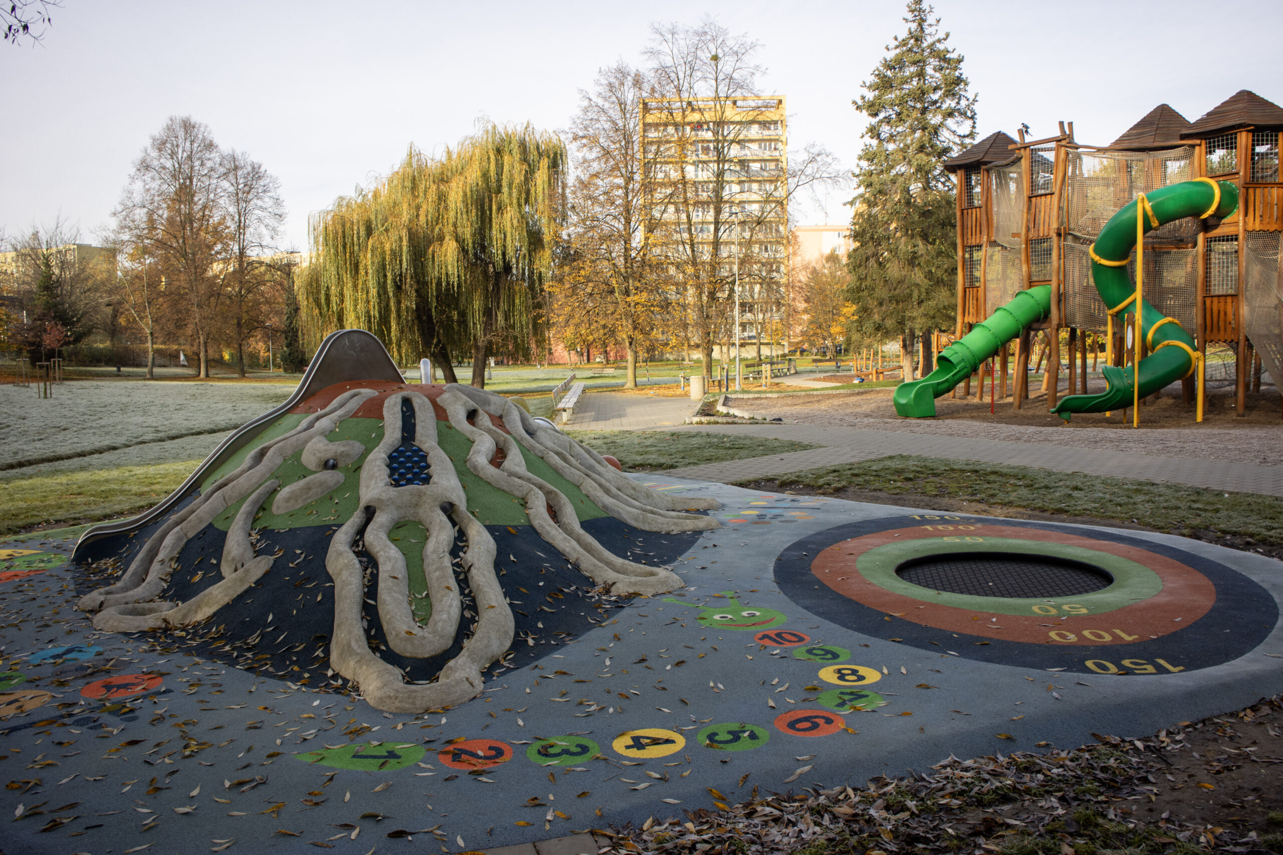 Dětské hřiště je ideálním místem pro rodiny, které hledají bezpečný a zábavný prostor pro hry a pohyb. Díky pestré nabídce herních prvků si každé dítě najde to své, ať už touží po dobrodružství, sportovním vyžití nebo klidnější hře. Dětské hřiště se nachází za budovou okresního soudu. Nejbližší autobusová zastávka, (Havířov, Podlesí, Nad Terasou), a parkovací místa jsou na ulici Dlouhá třída. Odtud se vydejte směrem k okresnímu soudu, u něj zahněte dolů z kopce, kde hřiště najdete.